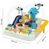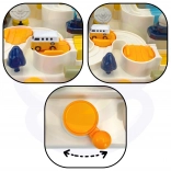Karok, gombok és tekerők hozzák mozgásba az egész pályát. A gyermek tisztán manuálisan gyakorolja a finommozgásokat, a koordinációt és a figyelmet.