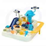Fedezd fel a végtelen fantáziauniverzumot a Woopie interaktív autópályával. A gyerekek mechanikus karokkal, gombokkal és kapcsolókkal irányítják a járművek mozgását – elemek nélkül. A vidám űrbázis kilövővel, mozgó platformokkal és lifttel fejleszti a finommotorikát, a logikus gondolkodást és a kéz–szem koordinációt.