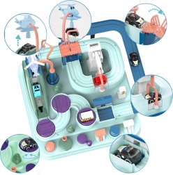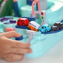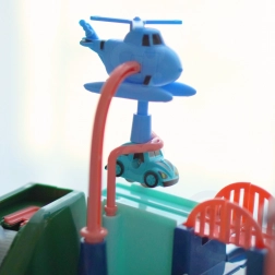 Az együttes tartalmaz három kis autót, amelyek szabadon felfedezhetik a pályát a kis játékos képzeletének megfelelően. A járművek színesítik a játékot, vagy lehetővé teszik a gyerekek számára, hogy versenyezzenek a pályán. A pályán való út egyszerűnek tűnhet, de a számos elemek, mint a sebességváltók vagy a felnyitható hidak biztosítják, hogy az út adrenalinnal teli legyen.