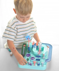A gondosan kialakított szerkezetnek és a változatos elemeknek köszönhetően a játék felejthetetlen pillanatokat kínál, tele izgalommal és kihívásokkal. Ideális eszköz a képzelőerő fejlesztéséhez és a finommotoros képességek fejlesztéséhez, mely egyúttal sok szórakozást nyújt. Az autópálya nem csak vezetési lehetőségeket nyújt, hanem interaktív elemeket is, amelyek gombokkal és kulcsokkal vezérelhetők. Ez az izgalmas játék koncentrációt és ügyességet igényel.