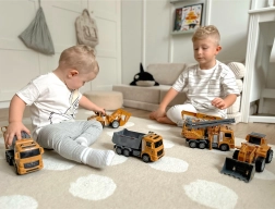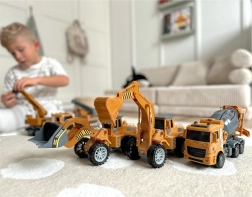 Ezzel a készlettel a gyerekek felfedezhetik a különböző építési tevékenységeket és fejleszthetik képzelőerejüket. Hat nagy járművet tartalmaz, mindegyik mozgó alkatrészekkel és realista részletekkel, amelyek a valódi építőgépeket idézik.