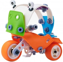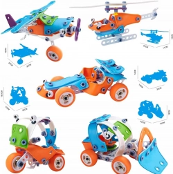 Ez a készlet 118 darabot tartalmaz, amelyek lehetővé teszik különféle járművek, mint a buldózer, helikopter, repülőgép vagy gokart megépítését. Segít fejleszteni a kreativitást és a finom motoros képességeket a gyerekeknél, ami lehetővé teszi számukra az építés és tervezés világának felfedezését nagy elégedettséggel és örömmel.