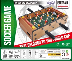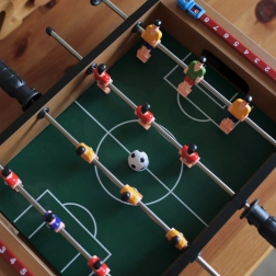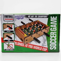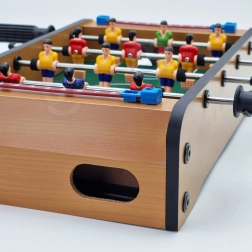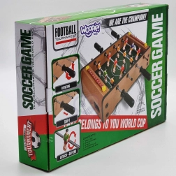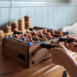 Élvezze az izgalmas mini meccseket a kompakt WOOPIE asztali csocsóval. A stabil fa szerkezet, a fém rudak és az ergonomikus fogantyúk gondoskodnak a figurák zökkenőmentes irányításáról és a kényelmes játékról. A mindkét oldalon integrált pontszámlálók segítenek követni a játék állását.