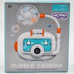 A színes buborékfújó gép fényképezőgép formában, a Woopie márkától, remek játék a gyerekeknek. Ez a fényképezőgép nemcsak buborékokat fúj, hanem fényhatásokat is kínál, amelyek vakuhoz hasonlítanak, továbbá egy ventilátort, amely messzebbre repíti a buborékokat, és kellemes melódiát a még szórakoztatóbb pillanatokért. A gyerekek fényképezőset játszhatnak, majd együtt ugrálhatnak a buborékok után. A csomag tartalmaz egy tartályt a buborékfújó folyadékhoz és egy pántot, hogy a fényképezőgépet a nyakba lehessen akasztani.