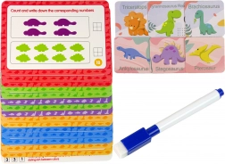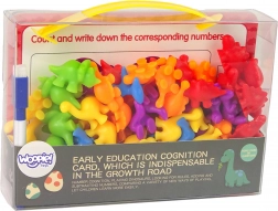 Lehetőséget biztosít a gyermekek számára, hogy játékosan tanuljanak számolni színes dinoszauruszok és feladatkártyák segítségével.