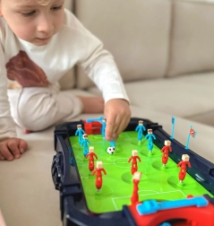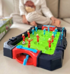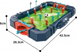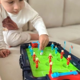 Szórakoztató asztali foci két játékosnak, kompakt kivitelben. A két kapuval ellátott, valósághű pálya izgalmas játékot kínál, fejleszti a gyerekek reflexeit, pontosságát és koncentrációját. Remek választás családi és baráti összejövetelekre, valamint ajándéknak.