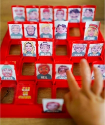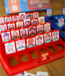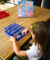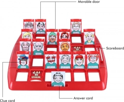 Praktikus kivitel két táblával és szereplőkkel, átlátható játék, ami elfér a hátizsákban. Tanulás játékon keresztül: fejlődik a szókincs, a logikus gondolkodás és a figyelem a részletekre (szemszín, frizura, szakáll stb.).