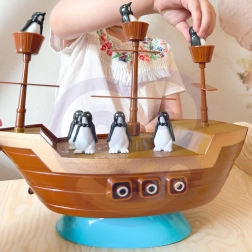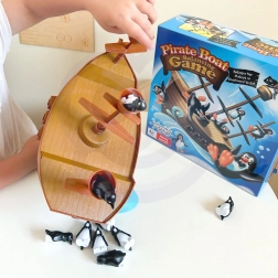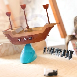 Bemutatjuk a szórakoztató és izgalmas Woopie kalózhajó pingvinekkel játékot, amely 3 éves kortól ajánlott. A játékkal a gyerekek fejlesztik kézügyességüket, valamint logikai és stratégiai gondolkodásukat.