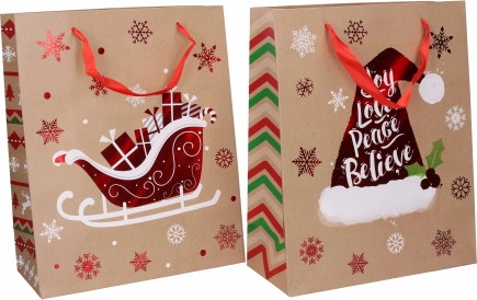 Takarítson meg időt és idegeket az elegáns karácsonyi táskával, amelybe könnyedén elrejtheti az ajándékokat családnak és barátoknak. A masszív papír megbízhatóan tartja a tartalmat, az ünnepi minta pedig megadja az ajándéknak a megfelelő eleganciát.