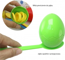 • - A készlet tartalmaz színes tojásokat, színes pálcákat és karikákat
