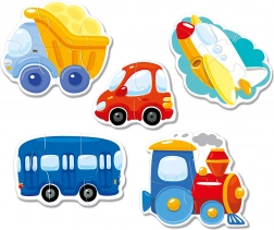 Biztosítson szórakozást gyermekei számára ezekkel az aranyos puzzle körvonalakkal ábrázolt képekkel, közlekedési eszközökkel. Ez a készlet 5 különböző képet tartalmaz, melyek mindegyike 2-től 4 darabig áll össze. A puzzle 3 évtől ajánlott gyermekek számára, támogatva a koncentrációt és a logikai gondolkodást.