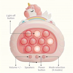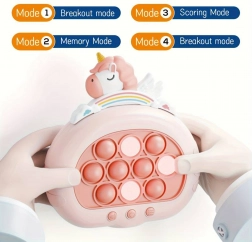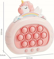 Az Elektromos Egyszarvú Pop It nagyszerű szórakozást és fejlesztést biztosít a hároméves és idősebb gyermekek számára. Gyerekek és felnőttek egyaránt élvezhetik a buborékok benyomását és a versenyzést. A Pop It játék különféle játékmódokat kínál, amelyek különböző képességeket fejlesztenek: