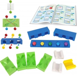 - Egyszerű kezdés: Helyezze a táblát egy egyenes felületre, helyezze el a golyókat az utasításoknak megfelelően, és kezdje el építeni a pályákat.