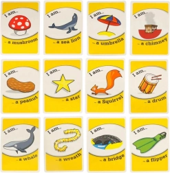 Az egyszerű angol feliratokkal ellátott kártyák támogatják a szókincs bővítését és a megértést. A gyerekek természetes módon tanulnak a találgatás és a jól feltett kérdések során.