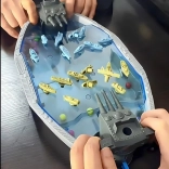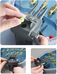A WOOPIE „Tengeri csata 3D” szórakoztató asztali játék dinamikus akciót kínál a kis stratégiáknak. A gyerekek kapitányokká válnak, és a golyókilövő segítségével találják el a célpontokat – hajókat és tengeralattjárókat – miközben pontokat gyűjtenek. A játék fejleszti a kéz–szem koordinációt, a pontosságot és a logikus gondolkodást, könnyen kezelhető, és készen áll a gyors, kétjátékos párbajokra.