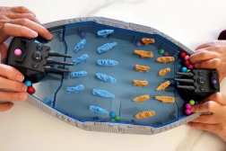 Színes hajók és tengeralattjárók a játéktáblán, amelyek valósághű csatát teremtenek, és már az első lövéstől beszippantják a gyerekeket.