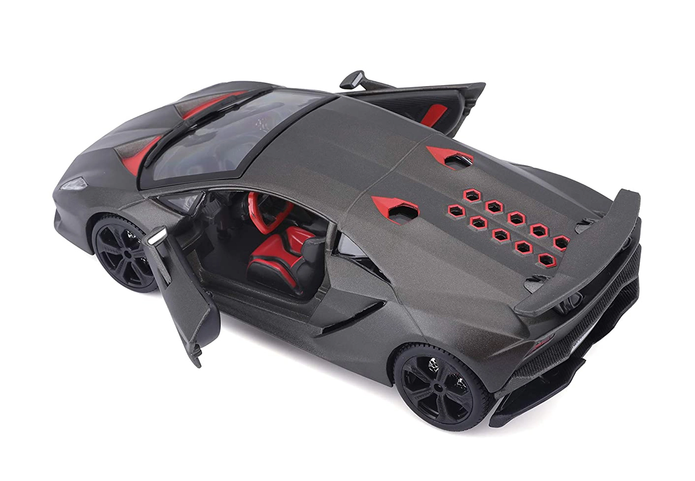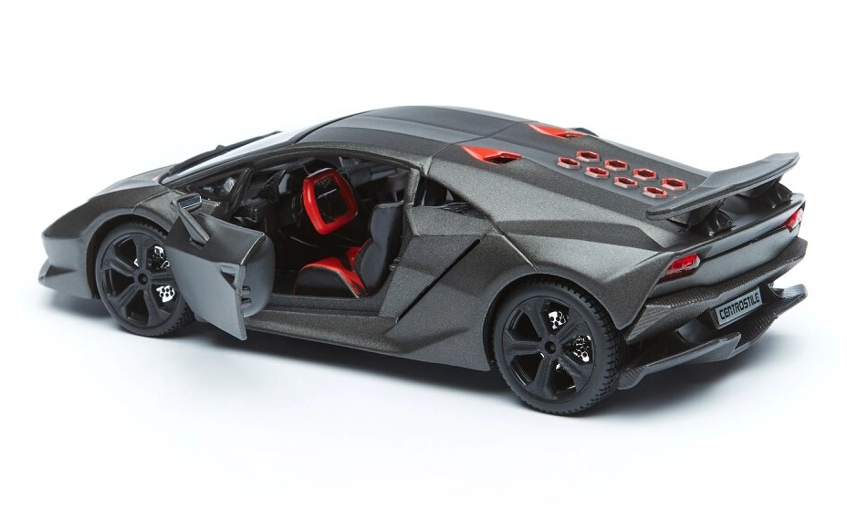 A Bburago 1:24 modell hűen adja vissza a LAMBORGHINI Reventón agresszív vonalait elegáns metál szürkében. A nyitható ollós ajtóknak és a kidolgozott belsőnek köszönhetően stílusos dekorációként a vitrinedben és strapabíró játékként is megállja a helyét a kis autórajongóknak.
