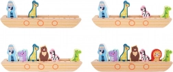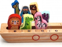 A Tooky Toy Noé bárkája témájú játéka lehetővé teszi a gyerekek számára, hogy állatfigurákat rakjanak össze a mellékelt könyv alapján. Minden figura két oldallal rendelkezik, az egyik jobbra, a másik balra mutat, ami változatosságot és komplexitást ad a tanuláshoz. A játékos feladata, hogy az összes figurát helyesen elhelyezze a bárkán a kiválasztott feladat szerint, miközben a logikus gondolkodást kell használniuk a helyes pozíció és irány meghatározásához.