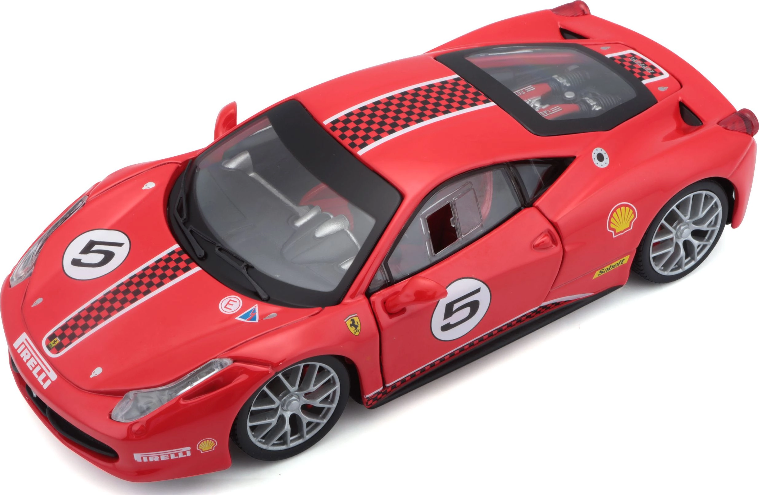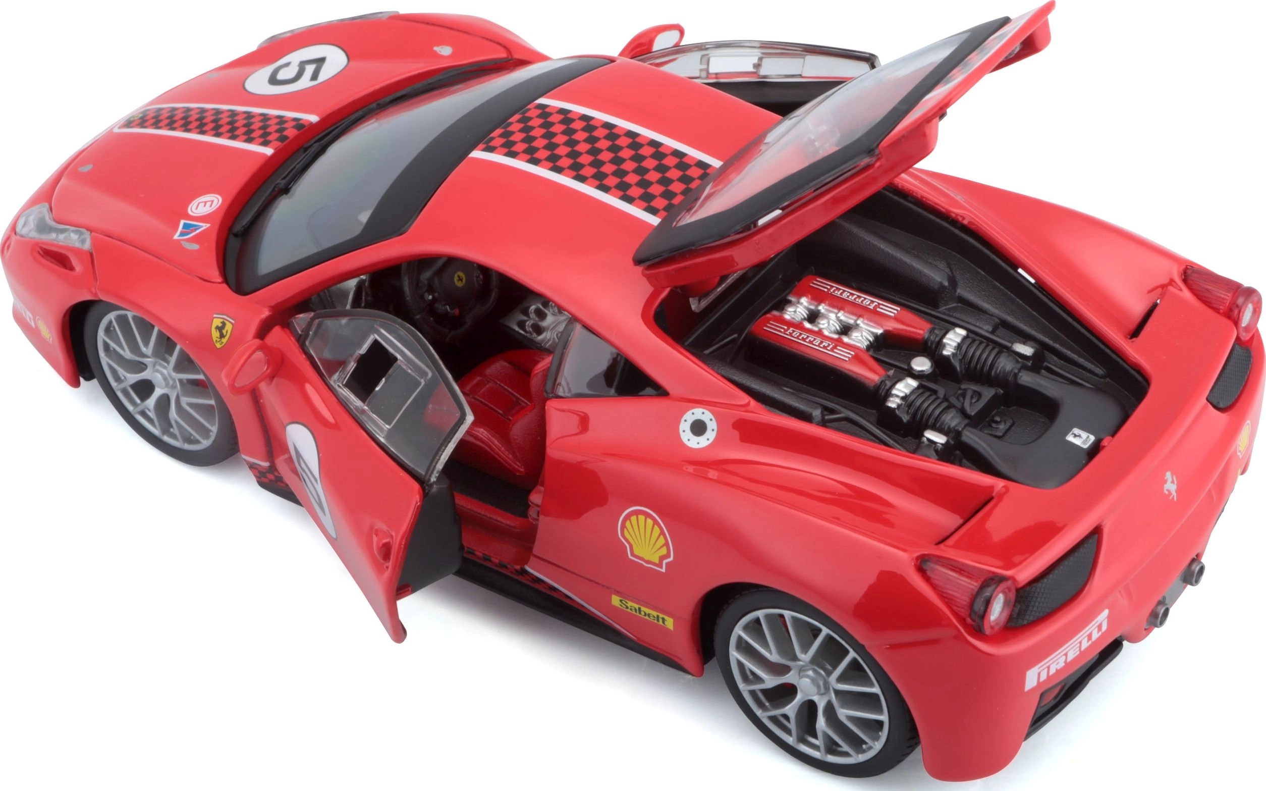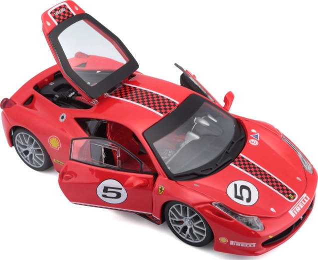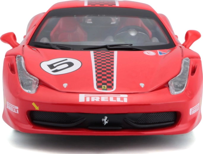 Ez a licencelt Ferrari 458 Challenge modellautó a karosszéria minőségi kidolgozásával, precíz nyomatokkal és hű arányokkal örömet szerez. A nyitható részeknek és a részletes belsőnek köszönhetően tökéletes kiállításhoz és játékhoz egyaránt.