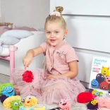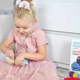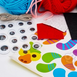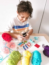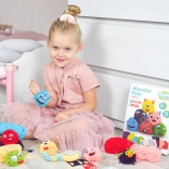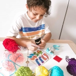 A készlet 6 különböző színű fonalat tartalmaz, amelyekkel a gyerekek színes szörnyecskéket alkothatnak.