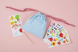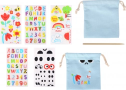 Színes betűk és számok segítségével elnevezheted a zsákot, és vidám képekkel díszítheted – minden darab egyedi lesz.