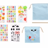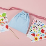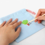 A szett ideális 4 éves kortól azoknak a gyerekeknek, akik szeretnek alkotni és dekorálni. A könnyű textil összehúzható zsák színes betűkkel, számokkal és vidám virág- vagy állatmotívumokkal díszíthető. Az egyszerű folyamatnak köszönhetően a gyerekek könnyedén készítenek egyedi zsákot apróságoknak óvodába, szakkörre vagy ajándék tasaknak.