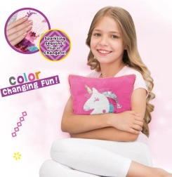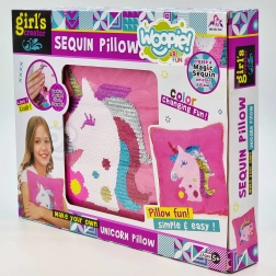 A Woopie ART&FUN kreatív készlet szórakoztató varrást és díszítést kínál egy egyszarvú mintás párnához. A csomag mindent tartalmaz – párnahuzatot, párnát, flittereket, tűt és cérnát. A kész párna varázslatos hatású: simításra megváltoztatja a színét. Remek választás a kreativitás, a fantázia és a finommotorika fejlesztésére már 5 éves kortól.