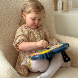 A multifunkciós gombok hanghatásokat, gyerekdalokat, elektronikus hangokat, az angol ábécé bemondását és dobot kínálnak. Szórakozás, amely fejleszti a hallást és a ritmusérzéket.