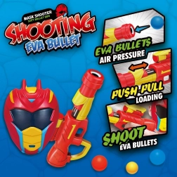 - A csomag tartalma: 1× kilövő, 9× habgolyó (különböző színekben), 1× gumipántos maszk