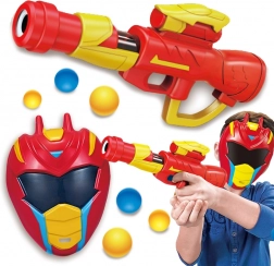 Ezzel a készlettel a gyerekek akciódús, mégis biztonságos szórakozást élvezhetnek. A rugós mechanizmus megbízhatóan lövi ki a habgolyókat elemek nélkül; a kezelése egyszerű, és a kis kezekhez ergonomikus. A stílusos, rugalmas pántos maszk plusz lendületet ad a játéknak és serkenti a fantáziát.