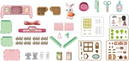 A gyerekek ezzel a bájos készlettel farmert játszhatnak, amely különféle gazdálkodási és nyuszigondozási elemeket tartalmaz.