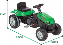 Ez a zöld pedálos traktor ideális játék a pedálos járművekkel való kalandok kezdetéhez. A termék legmagasabb minőségű anyagokból készült, amelyek kímélik a környezetet, és teljesen biztonságosak a gyermek egészségére. A pedálos traktor tökéletes ajándék minden gyermek számára. Szabadalmaztatott kormányzási rendszerrel rendelkezik, amely a legkisebb felhasználók számára is megkönnyíti a vezetést.
