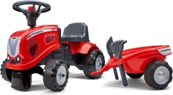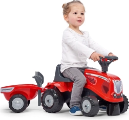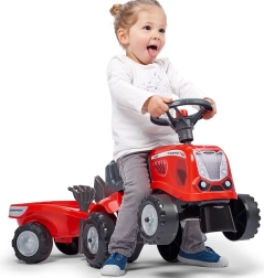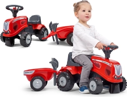 A Falk márkájú gyermek McCormick tolható traktor utánfutóval minden kis traktoros álma. Kiváló minőségű anyagokból készült, ideális 12 hónapos kortól. Tartalmaz leválasztható utánfutót és kormánykereket dudával a maximális szórakozásért.