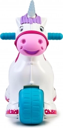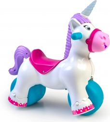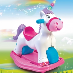 A világító szarv és a vidám hangok serkentik a fantáziát, mozgásra ösztönöznek, és fejlesztik a vizuális és hallási észlelést. Ideális társ az első lépésekhez, az egyensúly és a koordináció gyakorlásához, 12 hónapos kortól.