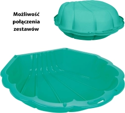 A Woopie márkájú Kagyló homokozó tökéletes játék otthoni és szabadtéri használatra egyaránt. Időjárásálló anyagból készült, a szín nem fakul meg a napon. Nincsenek éles szélei, ami biztosítja a gyermeke biztonságát játék közben. A homokozó két részből áll, és ideális a hosszú szabadban töltött szórakozásra. Forró napokon homokozóként vagy medenceként szolgálhat. Víz feltöltésével az egyik kagyló medenceként használható, a másik homokozóként. A homokozó lezárható és éjszakára biztonságban hagyható, védve a homokot az állatoktól vagy az esőtől. Szezonon kívül a háztartásban nagy játéktárolóként vagy száraz medenceként labdákkal használható. A két részből álló összecsukható kagyló könnyen szállítható és tisztítható. A lekerekített széleknek köszönhetően a játék biztonságos a gyermek számára.