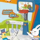 2 az 1-ben sportkészlet: kosárlabda és focikapu a Woopie márkától – remek kombináció a legkisebbeknek! A gyerekek kiválaszthatják, melyik játékban szeretnének versenyezni. Játszhatnak önállóan kosárlabdát, vagy barátokkal focit – sosem fognak unatkozni!