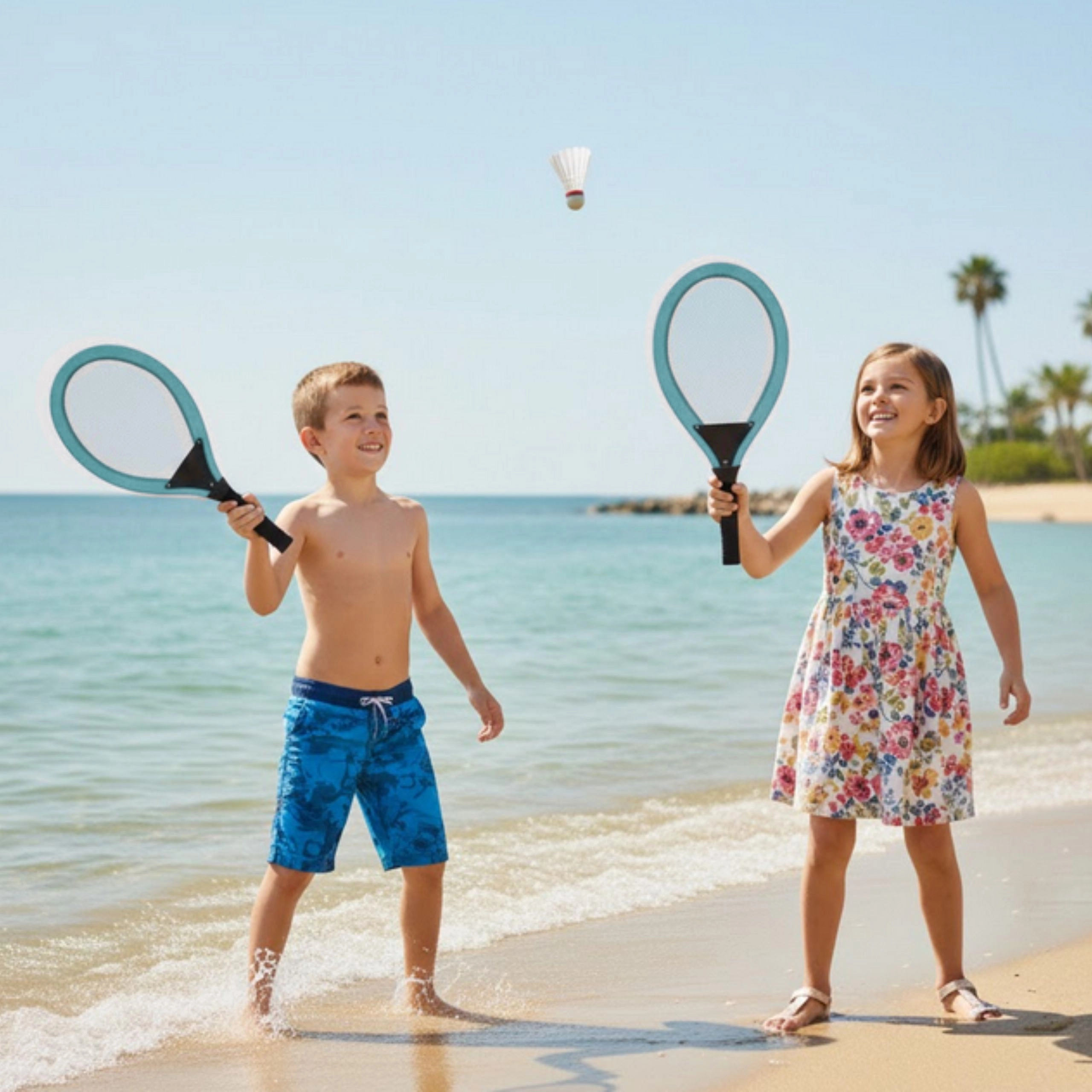 Ideális strandra, kertbe és játszótérre. A szett erősíti a kéz–szem koordinációt, fejleszti a nagymozgásokat és támogatja a közös aktív időtöltést.