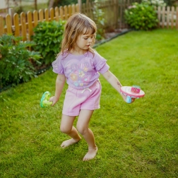 A szett minőségi, tartós műanyagból készült, így bírja a mindennapos játékot kint és bent. Támogatja a kézügyesség, a kreativitás és a koordináció természetes fejlődését – ideális az aktív családi pillanatokhoz.