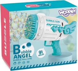 WOOPIE buborékpisztoly nagyszerű szórakozás 3 éves kortól. A 91 nyílásnak köszönhetően nagy gyakorisággal hoz létre buborékokat, ami látványos hatást és sok örömet nyújt.