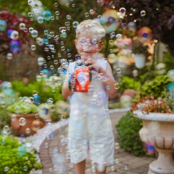 A LED világítással ellátott forgó kimenet 360°-ban forog, és több irányba fújja a buborékokat. A gyerekek így többet mozognak, fejlesztik a koordinációt, és rengeteg mókában lesz részük. A csomag két üveg buborékoldatot tartalmaz, így az elemek behelyezése után azonnal kezdődhet a játék.
