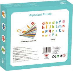 A készlet 26 betűelemet, 30 masszív kártyát és egy praktikus karikát tartalmaz, amely otthon és útközben is egyben tartja a kártyákat.