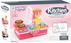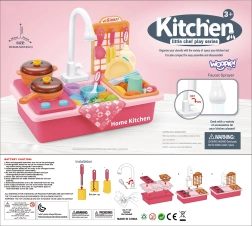 A játék 3 éves kortól ajánlott, és számos tartozékkal van felszerelve, beleértve lábasokat, tálakat és különféle műanyag ételeket. A mosogató a kiegészítők tárolására is használható, ami rendet teremt játék közben és után. Az egész szett színvilága rózsaszín, a vibráló árnyalatoknak köszönhetően pedig különösen szórakoztató.