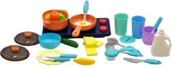 Különféle kiegészítőknek, például műanyag ételeknek, lábasoknak és különböző edényeknek köszönhetően a gyerekek utánozhatják a főzést, ezáltal fejlesztve kreativitásukat és finommotoros készségeiket.
