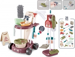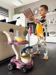 A készlet egy valódi takarítókocsit utánoz, ezzel segítve a gyerekeket a felelősség és a tisztaság iránti gondoskodás felfedezésében.