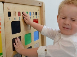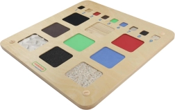 A MASTERKIDZ szenzoros táblát az érintésen alapuló játékos világfelfedezésre tervezték. A gyerekek felügyelet mellett azonos textúr párokat keresnek bekötött szemmel, és leírják azok tulajdonságait. Így fejlesztik a tapintási észlelést, a szókincset és a koncentrációt. A fa szerkezet tartós és környezetkímélő.