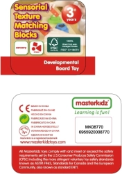 A készlet 4 pár fa blokkot tartalmaz jól megkülönböztethető felületekkel és négy alapszínnel – piros, kék, sárga és zöld. A játék közös felfedezésre is ideális egy felnőttel: a felületek leírása, az egyezések keresése és a különböző szempontok szerinti válogatás fejleszti a szókincset és a szenzoros integrációt.