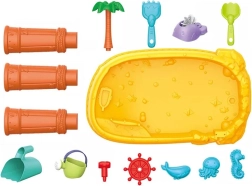 Formák, halacska, locsolókanna, füles edényke, gereblye és lapát – minden megvan az öntögetéshez, formázáshoz és ásáshoz.
