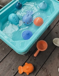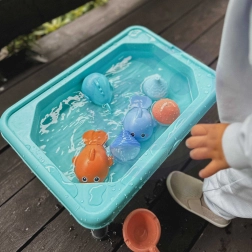 A készlet része egy hal és egy horgászbot, amelyek ösztönzik a gyermekedet a kis halak fogására, ezáltal javítva a mozgások pontosságát és koordinációját.