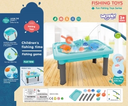 A készlet összesen 6 darabot tartalmaz, beleértve az asztalkát, a horgászbotot, vízi kanalat és három mágneses halacskát. Továbbá, a halacskák felhúzhatóak, így úsznak a vízfelszínen, ami felfedezésre ösztönzi a gyerekeket.
