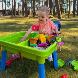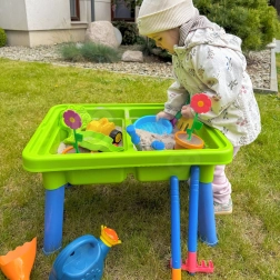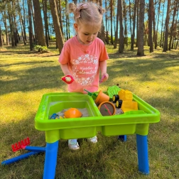 Fedezze fel a sokoldalú WOOPIE 2 az 1-ben játékasztalt, amely egy kompakt készletben egyesíti a vízi élményeket és a homokozós alkotást. A két különálló rekesz lehetővé teszi, hogy az egyiket vízzel, a másikat homokkal töltse meg, így a gyerekek egyszerre merhetnek, önthetnek, szitálhatnak és formázhatnak.